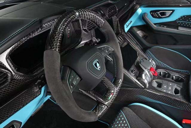 内饰方面,新车同样融入了大量的碳纤维组件,并且也搭配了荧光蓝配色,运动氛围浓烈的同时也展现出时尚感。