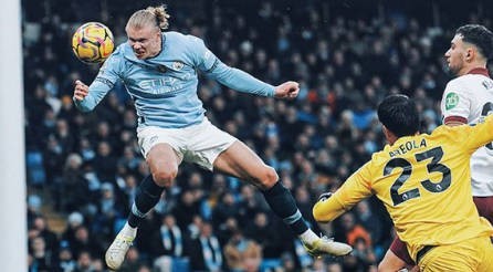 在今天晚上进行的英超第20轮曼城主场对阵西汉姆联的比赛中,哈兰德在第42分钟头球破门,帮助球队将比分扩大为2-0。