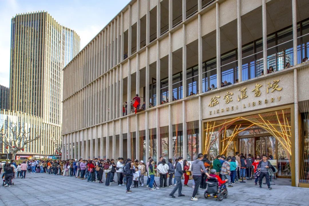 2024年,徐家汇书院接待读者游客263万人次,较前一年同比增长34%,借还图书132万册次,同比增长13%,举办各类活动391场次。今年首个周末,单日客流破万,达到10834人次。