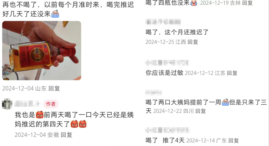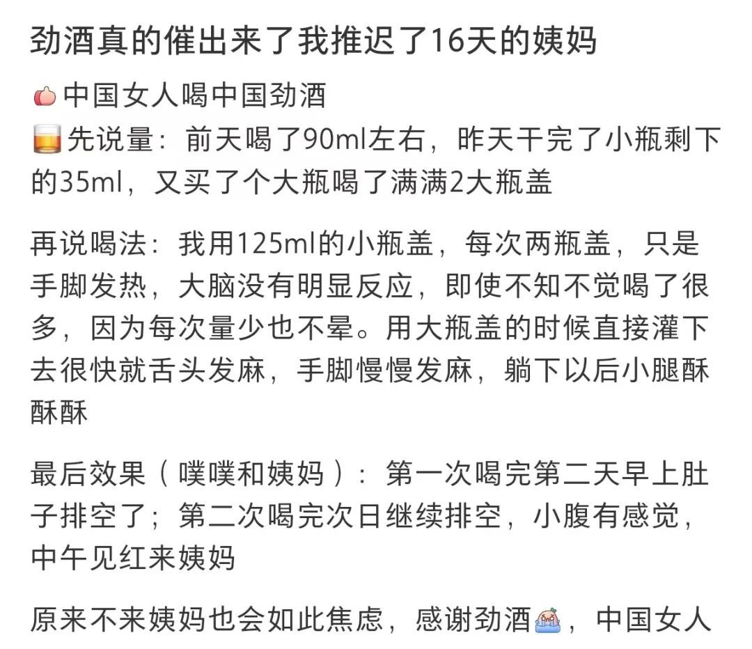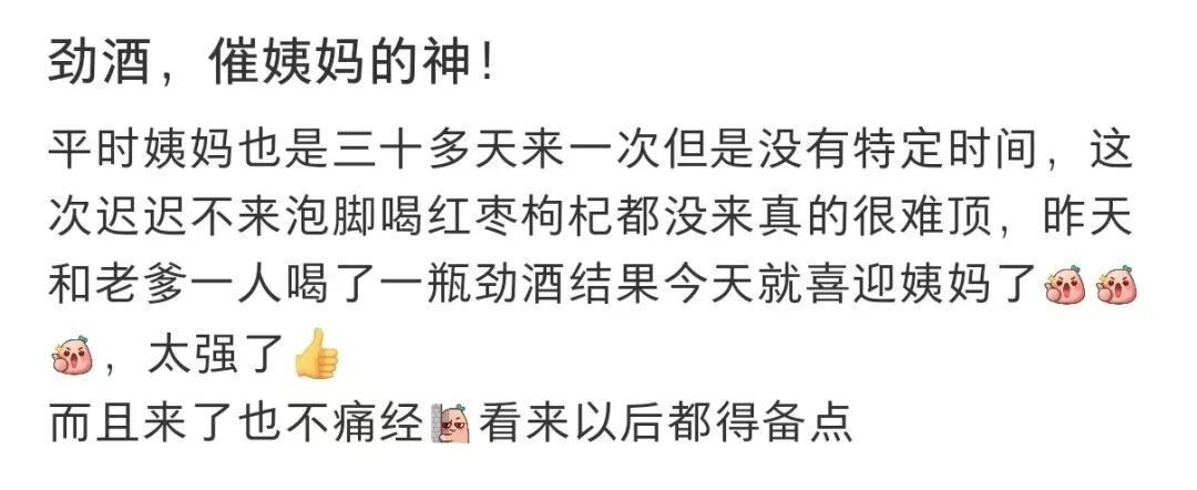 很多网友靠着劲酒,催来了姨妈。