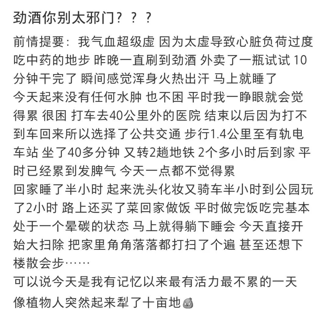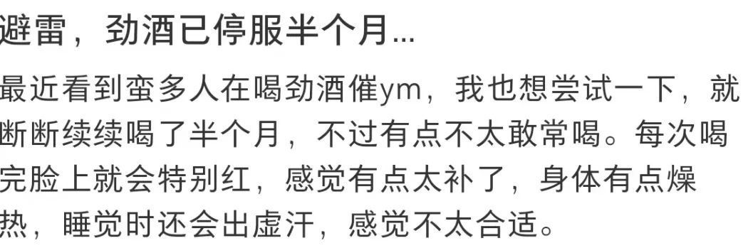 我再多冲浪一会儿,就发现已经有很多朋友喝了劲酒非但没有来姨妈,甚至身体更难受了。