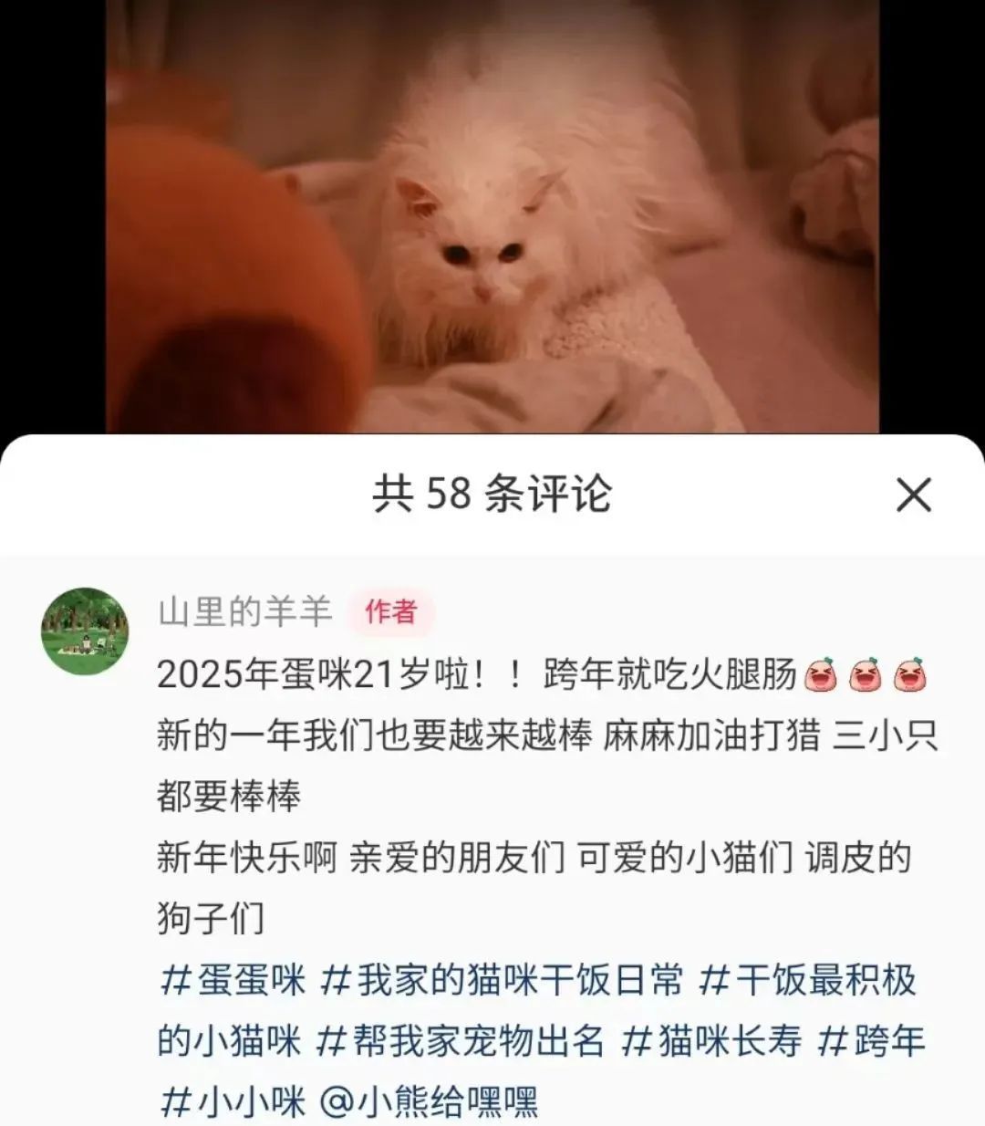 博主@山里的羊羊 家的狮子猫蛋咪21岁啦!