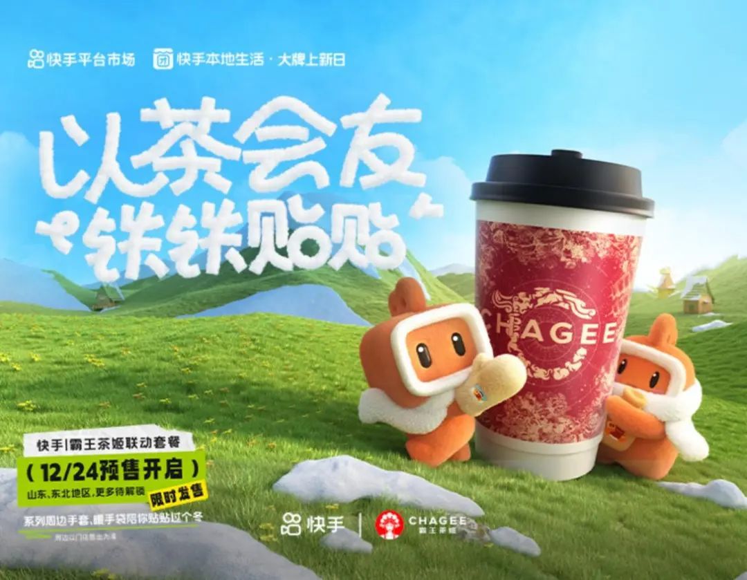 年末,冷空气带旺“暖经济”,消费者对热饮和保暖装备的需求激增。快手敏锐捕捉了这一机遇,在2024年12月24日至2025年1月3日期间,联动霸王茶姬推出“以茶会友 铁铁贴贴”的联名活动。活动期间,山东、天津、河北、东北地区门店消费者只要购买联名套餐,就可获得周边手套和暖水袋。