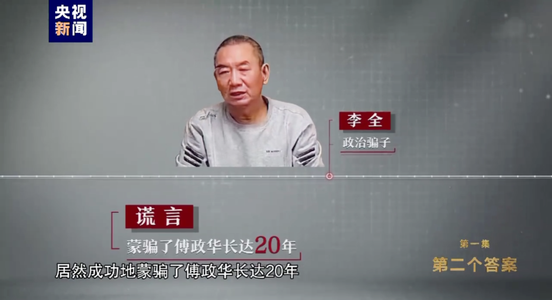 “政治骗子”李全蒙骗傅政华长达20年,图为电视专题片《永远吹冲锋号》截图 图源:“央视新闻”微信公众号