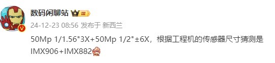 根据此前报道,OPPO Find X8 Ultra的潜望双长焦镜头会有提升,3倍镜头为1/1.56英寸的IMX906,6倍镜头为1/2英寸的IMX882。OPPO Find X8 Ultra的潜望双长焦战略依旧是同档唯一,覆盖的焦段对比其他旗舰更加全面,整体影像更加均衡。