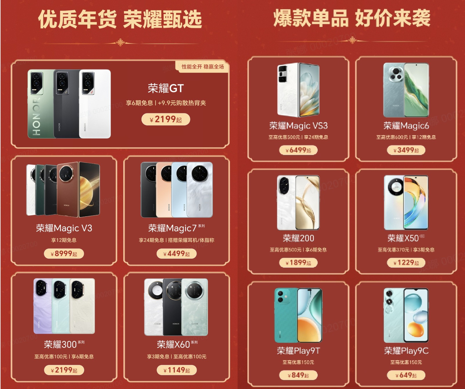 此前,2025荣耀魔法科技年货节已经风火开锣,通过在荣耀旗舰店(成都宽窄巷子)等部分门店举行荣耀AI魔法市集,以丰富多样的体验互动和福利举措,共庆新年荣耀,赢得了大批消费者认可与喜爱。与此同时,全国超2000家荣耀门店迎来哪吒主题焕新,消费者前往打卡有机会获得哪吒周边,并有3500元全场至高优惠、还有机会领取200万份购机超值好礼,先到先得,快前往附近荣耀门店打卡赢好礼吧!