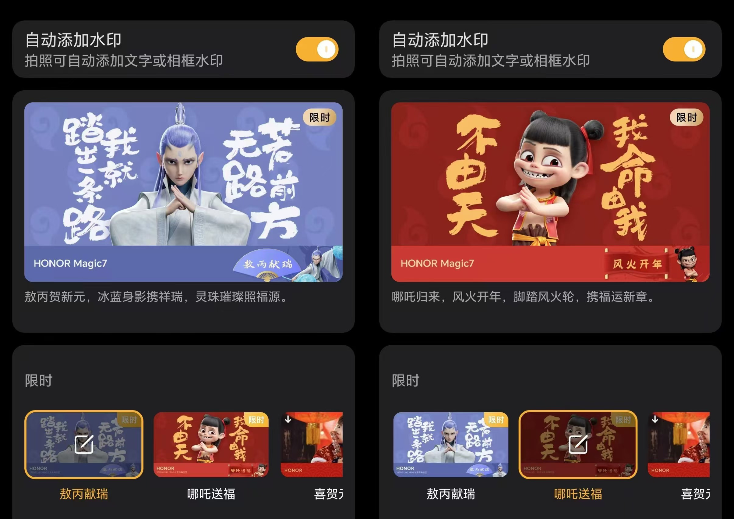 (图片分别使用“哪吒送福”、“敖丙献瑞”相机水印拍摄)