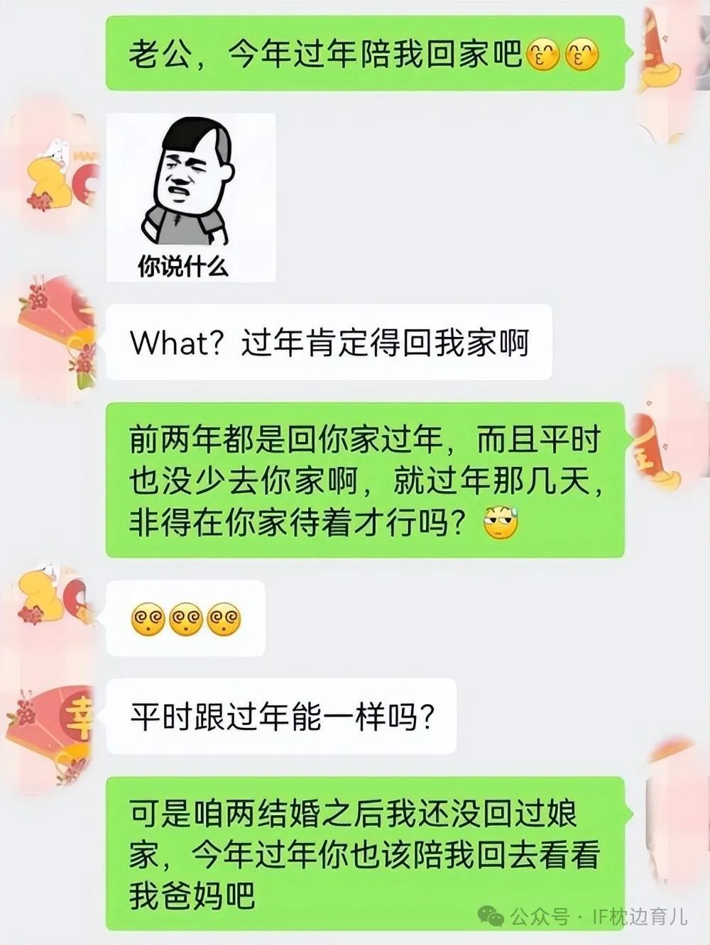 再说了,当今社会男女平等,时代在进步,没有什么必须在男方家过年的传统规矩了。