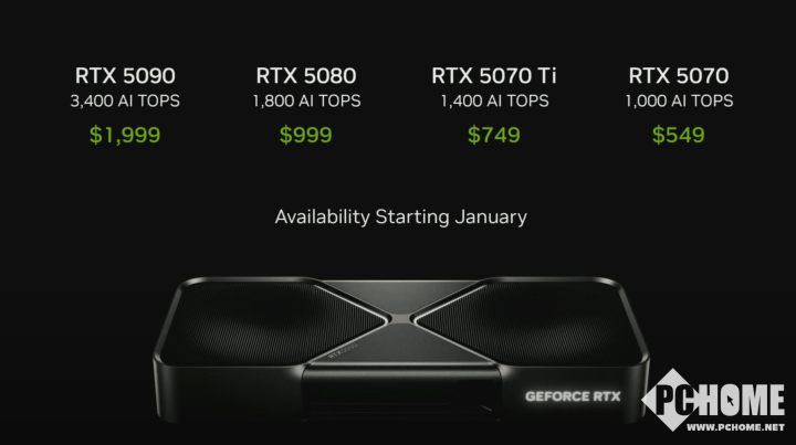 预计RTX 50系列桌面显卡将于1月开始陆续上市,搭载RTX 50系列移动显卡的游戏本预计将于3月开始陆续上市。