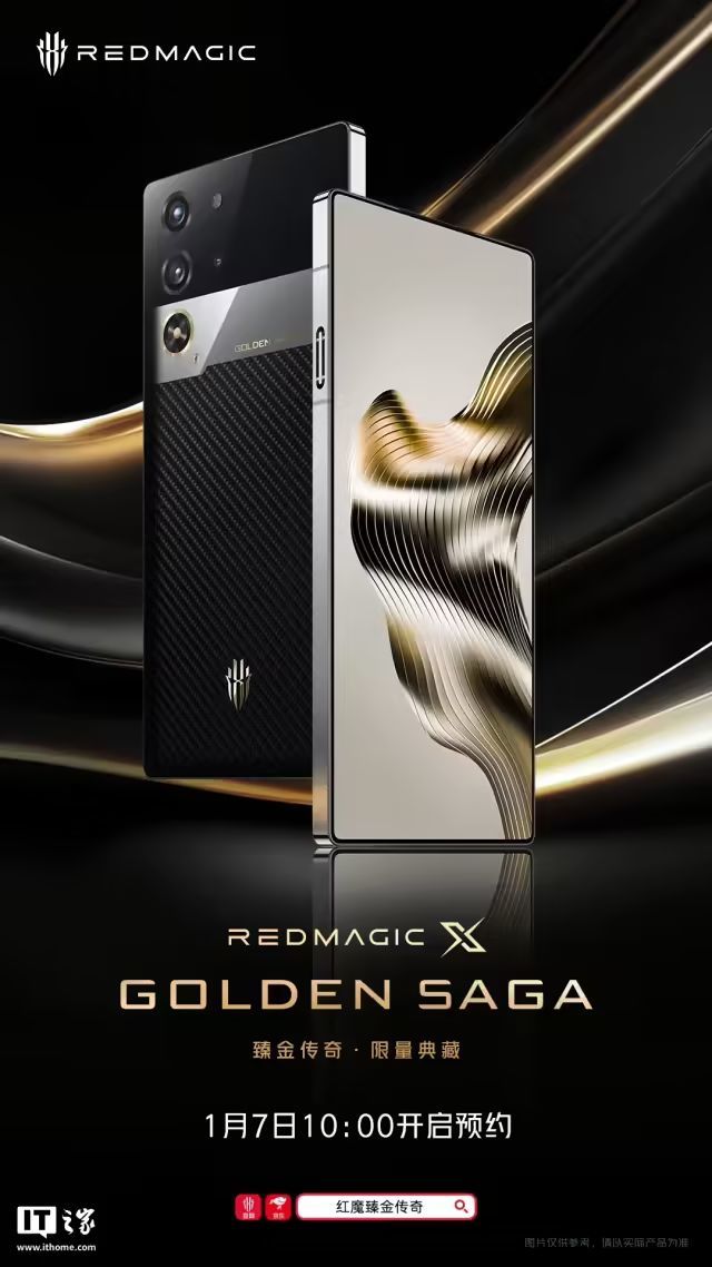 红魔游戏手机官方发文宣布,红魔 X GoldenSaga 手机今日 10 点正式开始预约,宣称“臻金传奇・限量典藏”,24GB+1TB 版本售价 9699 元。