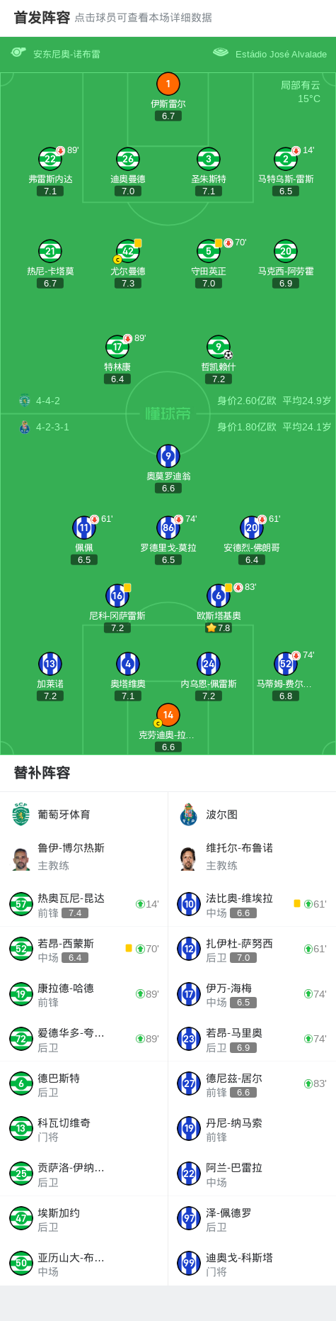 第56分钟,又是他!昆达助攻,哲凯赖什破门,葡萄牙体育1-0