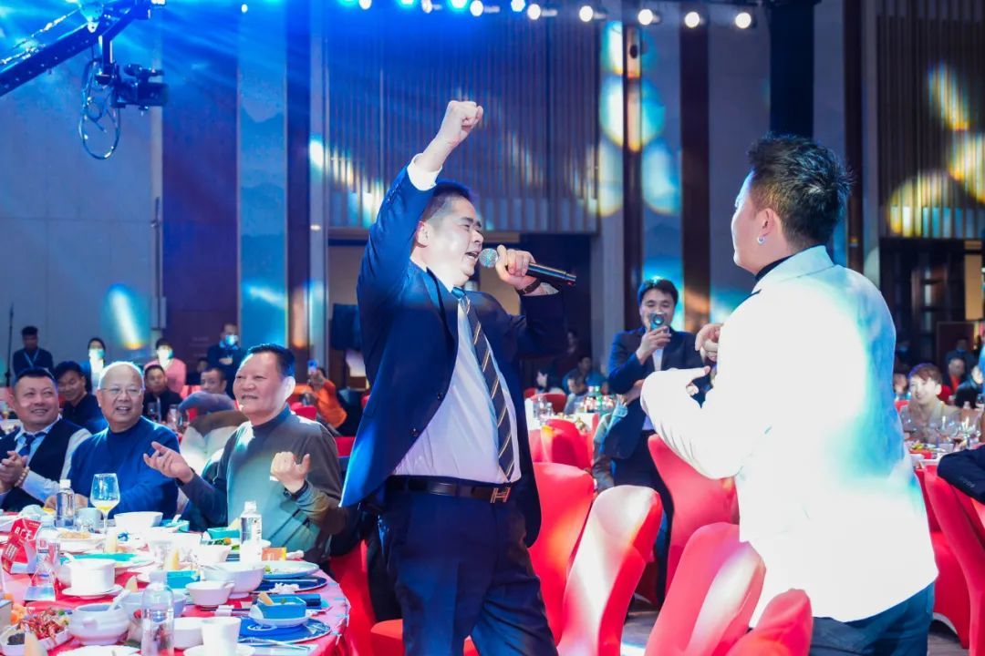 最后,全体会员起立合唱《榕商行天下》,全体人员高举国旗,台上台下浑然一体,气势雄壮,把会议气氛推向了高潮,以歌声为纽带,共同传递榕商精神,聚力赋能,赓续“榕”耀,努力把商会办成政府放心、会员满意、社会认可的品牌商会。