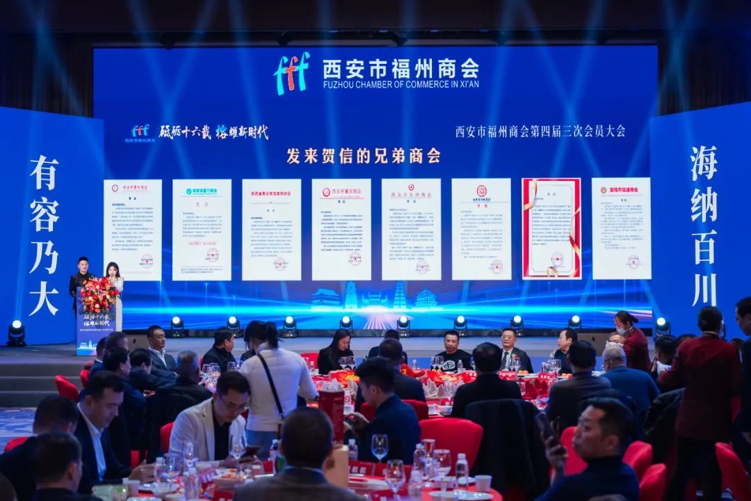 伴随着雄壮的《国歌》,西安市福州商会第四届三次会员大会拉开帷幕,40余家兄弟商会发来贺电。