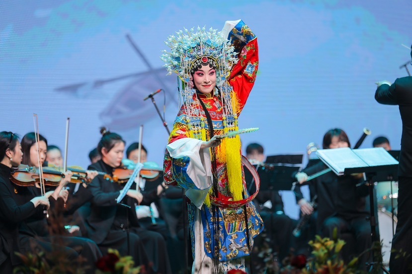 第三篇章“颂·咏时代竞风华”,京剧、歌剧等轮番上演,从《梨花颂》的国粹韵味到《我们的上海》的蓬勃活力,彰显了青浦海纳百川的广阔胸怀与环球风华的文化视野。世界著名的华人歌剧演唱家丁羔、Vocal Force力量之声相继登场,艺术家们用歌声诉说着青浦在经济、文化、科技等领域的辉煌成就,也寄托了对未来的美好憧憬。音乐会尾声,全体演员共同登台,唱响《我和你》,将现场气氛推向了最高潮。