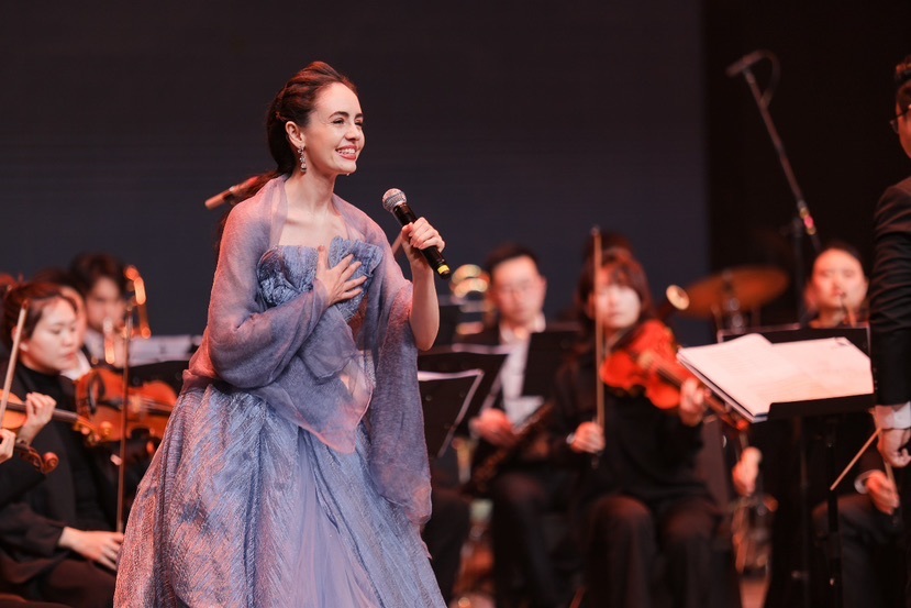 第二篇章“雅·生海派繁华处”聚焦创新融合,精彩不断。上海老歌《渔光曲》的经典旋律唤起了人们对往昔岁月的深情回忆。来自英国的女中音歌唱家菲比的深情演绎,为音乐会增添了一抹国际化的色彩。一曲《贝加尔湖畔》以其悠扬的琴音带领观众领略了异国他乡的宁静与美好,全方位呈现了青浦作为国际枢纽门户的多元文化交融之姿与海派文化的迷人魅力。