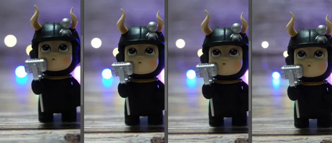 光圈从左至右分别为:F2、F2.5、F2.8、F4