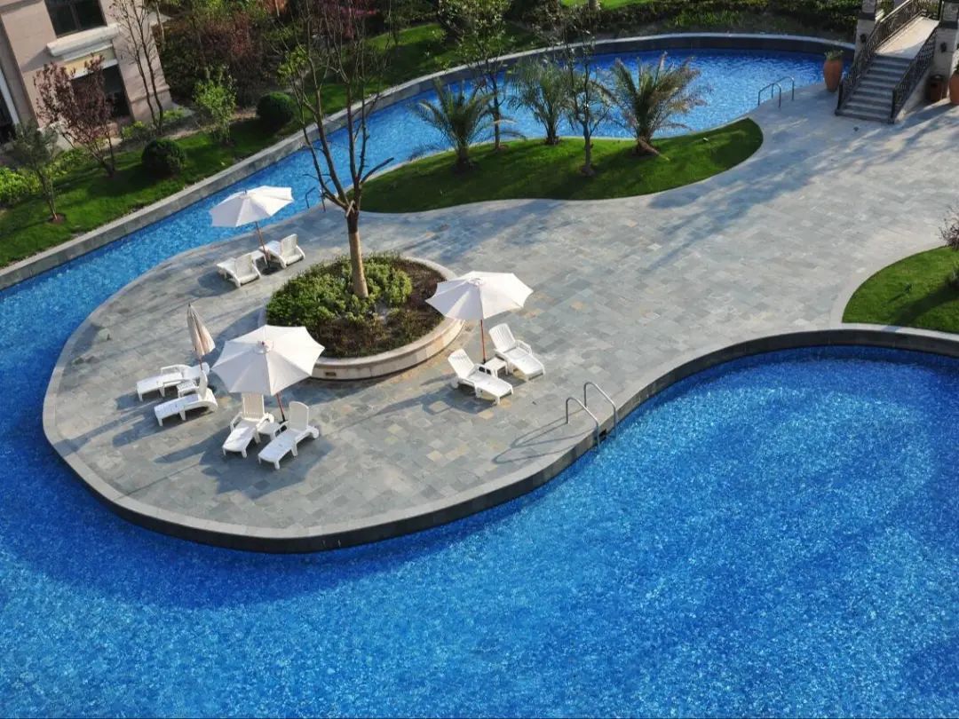 酒店还有室内恒温游泳池、So FIT健身中心、网球场、儿童乐园等休闲娱乐设施。酒店主楼西侧有4,400平方米室外游泳池和人造沙滩。阳光沙滩遮阳伞,滨海度假感十足,这也是“魔都小三亚”名称的由来。