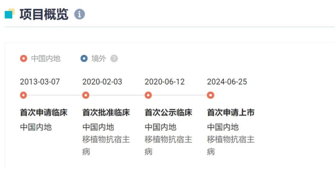早在2013年3月,该药物的研究者就在国内递交了新药临床研究申请(IND),但彼时受限于监管政策处于萌芽阶段,直至2020年6月才获临床试验许可。之后又历时4年,才于2024年6月被药品评审中心纳入优先审评审批,并于同月25日终于正式递交注册上市申请(NDA),出现在受理队列中。
