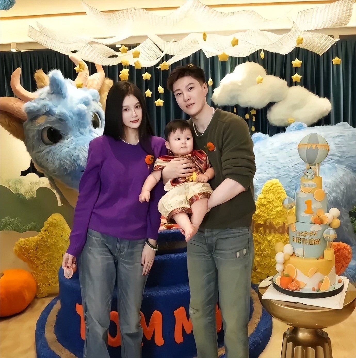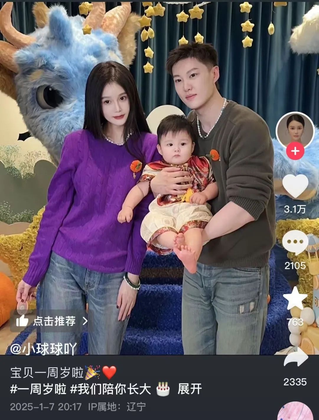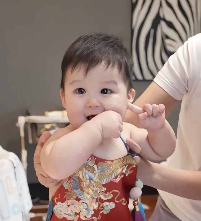 球球晒出多张照片写道:“宝贝一周岁,我们陪你长大。”