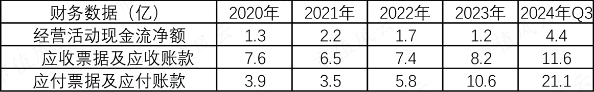 关键是还占用资金,看看应收账款也上升得很快,2022年-2024年Q3分别为7.1亿、8.0亿、11.1亿。