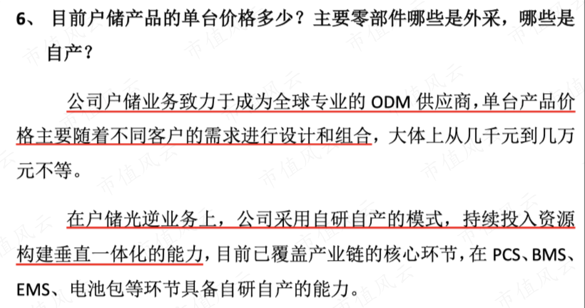 户用储能及光伏逆变器研产业务方面,公司已构建逆变器、电池包、EMS、BMS等垂直一体化研产能力,对产业链核心环节的全面覆盖,能实现自研自产。