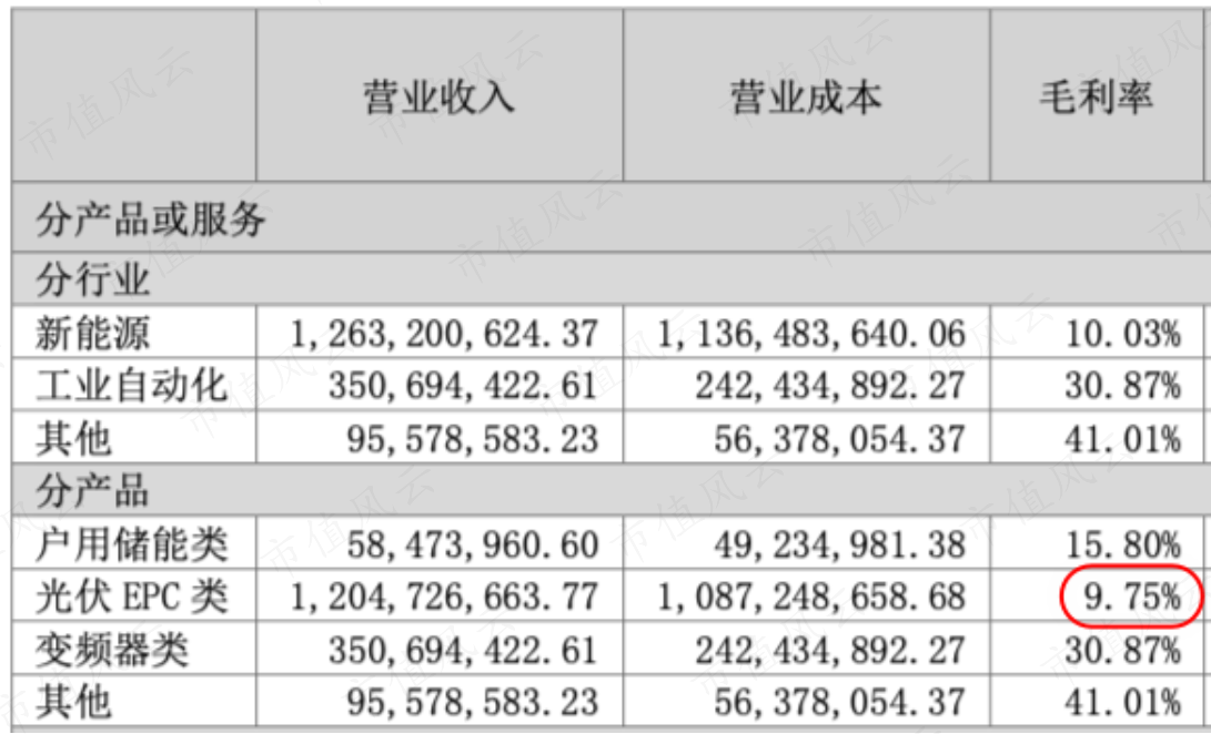 但光伏EPC这块业务毛利率很低,只有9.75%。