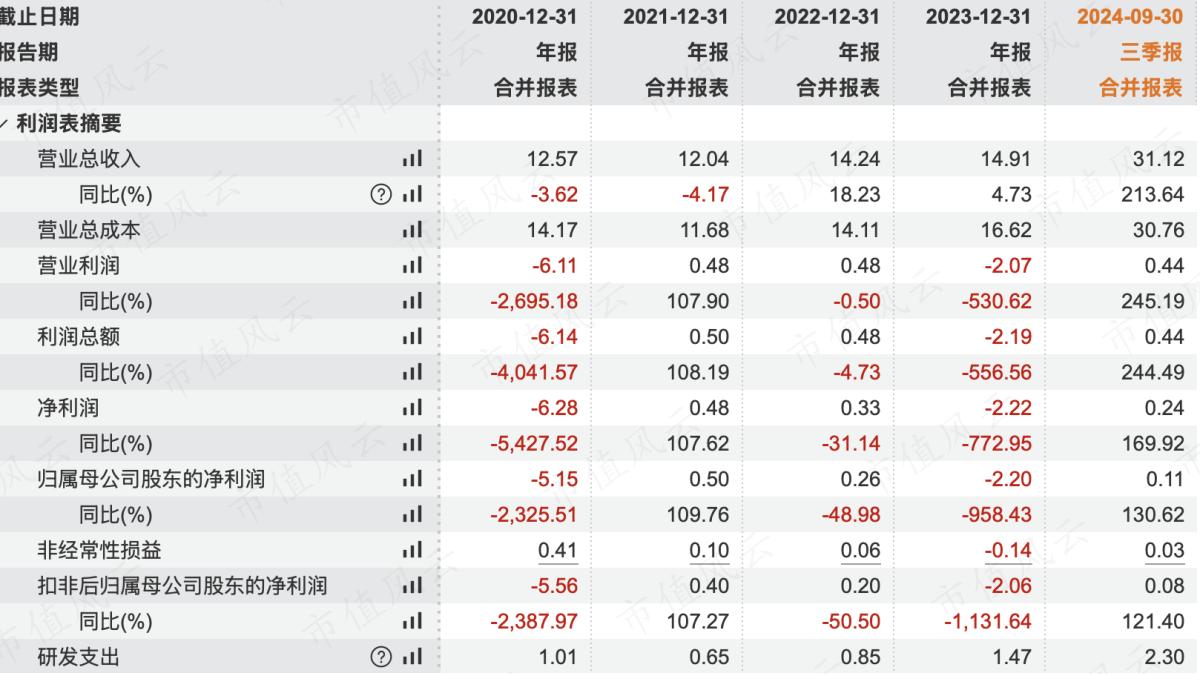 2022年、2023年、2024年Q3,研发投入分别为0.85亿、1.47亿、2.3亿,研发投入持续加大。
