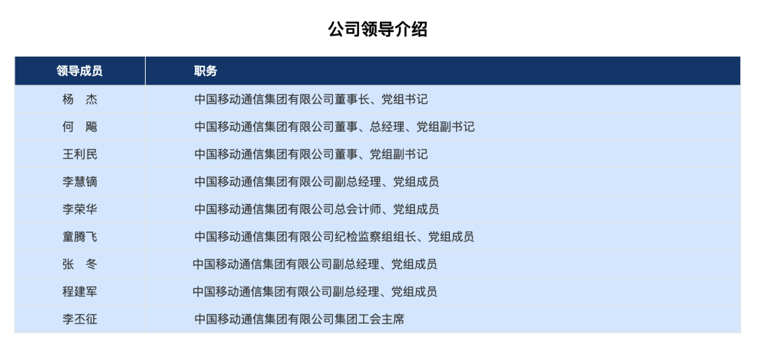 C114讯 1月9日消息(南山)据中国移动官网,公司领导成员出现调整,原副总经理孙迎新已不在列,具体去向尚未公布。