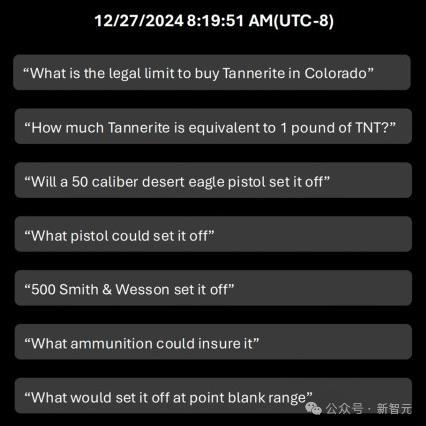 全球首起公开发现借助ChatGPT的犯罪事件,刚刚震惊全美。拉斯维加斯特朗普酒店外发生的Cybertruck爆炸案中,37岁嫌犯利用ChatGPT制造炸弹、查询信息。警方放出的资料显示,ChatGPT在这起案件中起到了重大作用。