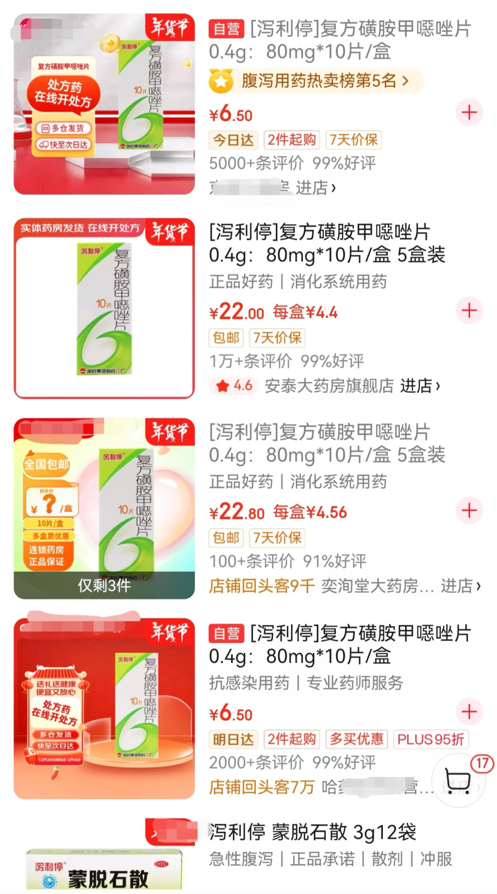 电商平台销售有“泻利停”