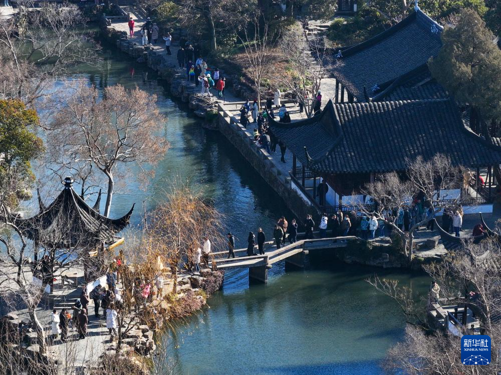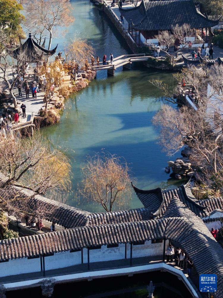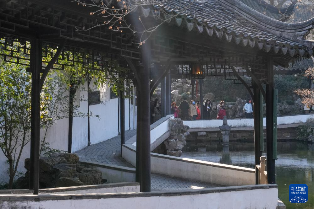 江苏苏州拙政园以其独特的园林风光,吸引众多游客前来赏景拍照。冬日里,游客们穿梭于园林内,一步一景,处处皆画。