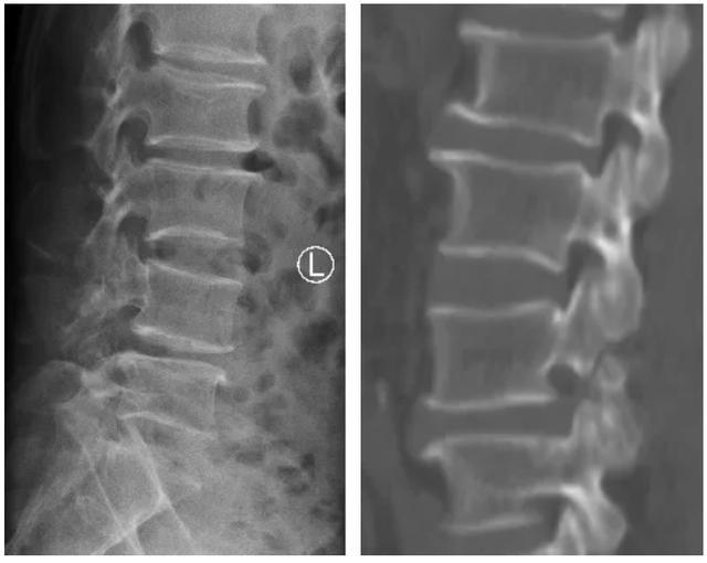 ▲术前X线见L4椎体滑脱,CT见L4椎体峡部不连