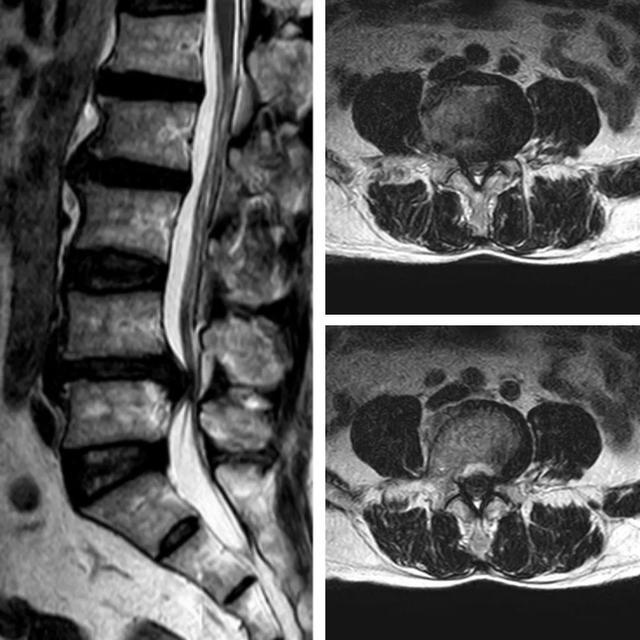 ▲术前MRI见L4/5椎间盘突出,相应层面椎管狭窄