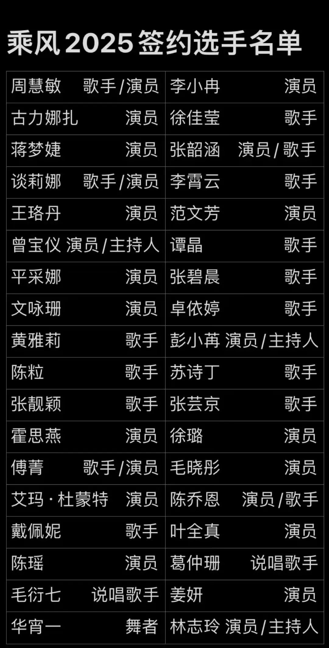 《乘风2025》应该是大年初八初九录制,网传据说现在姐姐们的签约名单已经流出了。