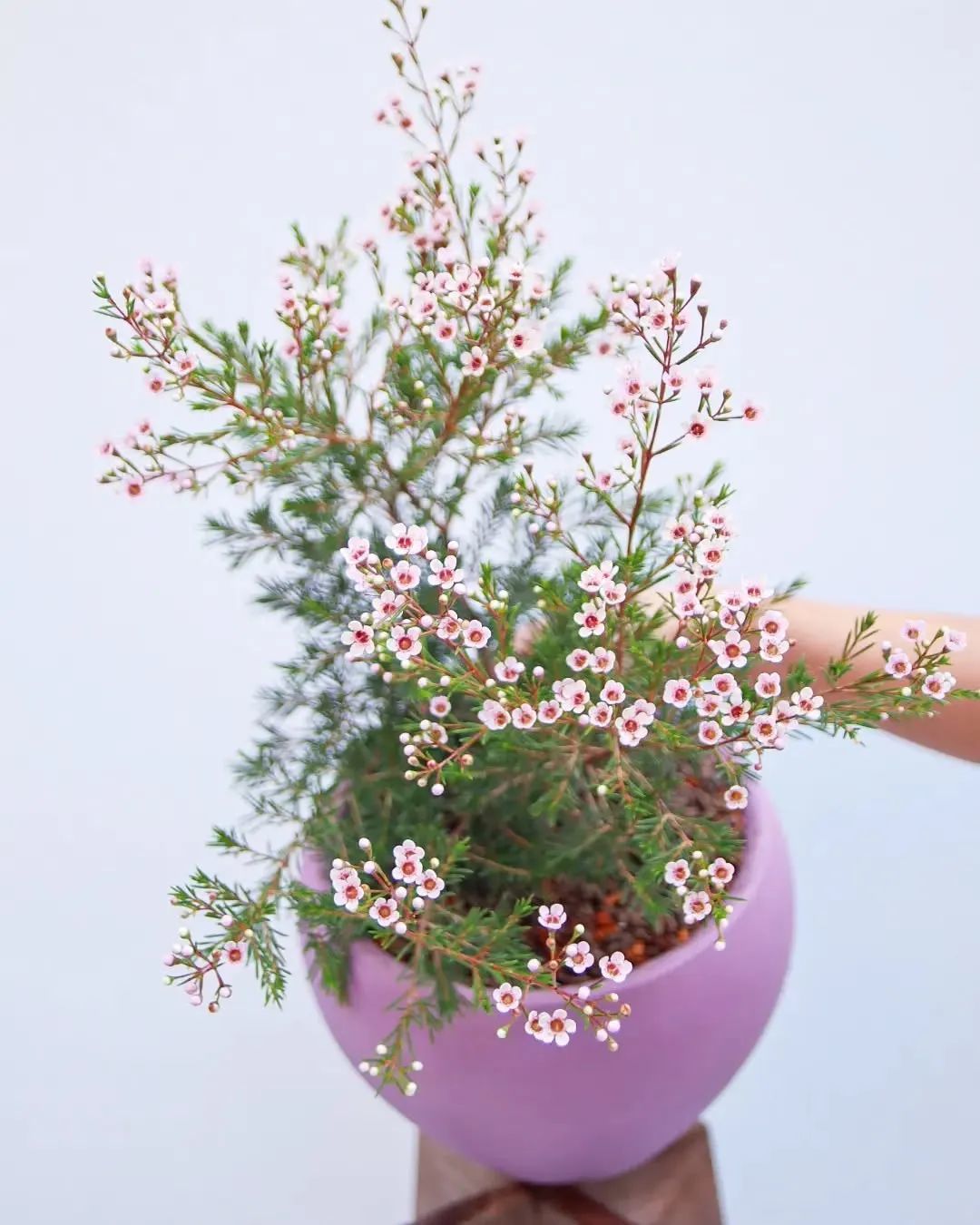 澳洲腊梅的中文正式名叫“蜡花”(学名:Chamelaucium uncinatum),是桃金娘科风蜡花属的矮生灌木。