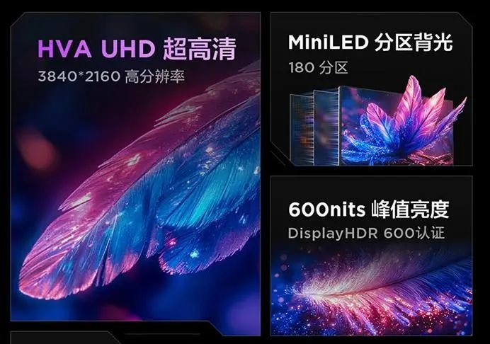 如果说雷鸟 U6 显示器的最大亮点是什么,那就是其采用的180分区 Mini LED 背光技术。传统的 LED 背光显示器通常只能提供整体亮度调节,导致画面细节不够丰富,特别是在强烈的光影对比场景下容易出现细节丢失或色彩偏差。而雷鸟 U6 的 Mini LED 背光系统通过细化背光分区,可以精确调节每个区域的亮度,带来更加深邃的黑色和更明亮的白色,保证了高对比度和真实的画面表现。