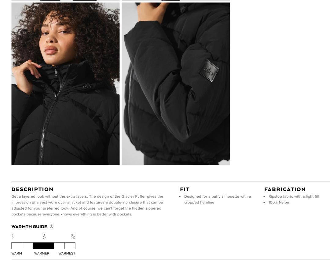 Alo官网售价近300 美元 (2100人民币) 的「羽绒服」填充物是100%聚酯纤维,相近价位lululemon的五格羽绒服80%鹅绒绒子填充,600蓬松度,售价2380元,而ZARA近期短款滑雪羽绒服采用80%羽绒填充,蓬松度达750,售价1499元。