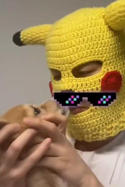 他戴着皮卡丘的头套,拿着一个写有“艰苦朴素”的茶缸,在直播间里火力全开。