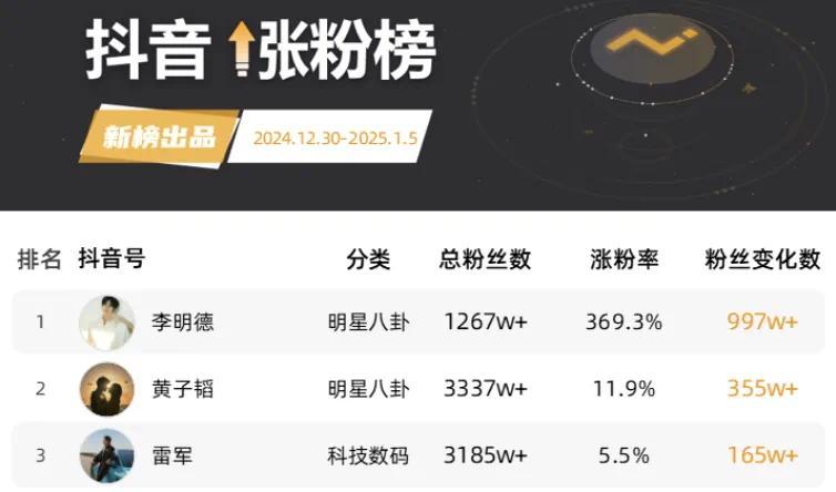 他在过去的一周涨粉近1000万,是全网涨粉最多的人。