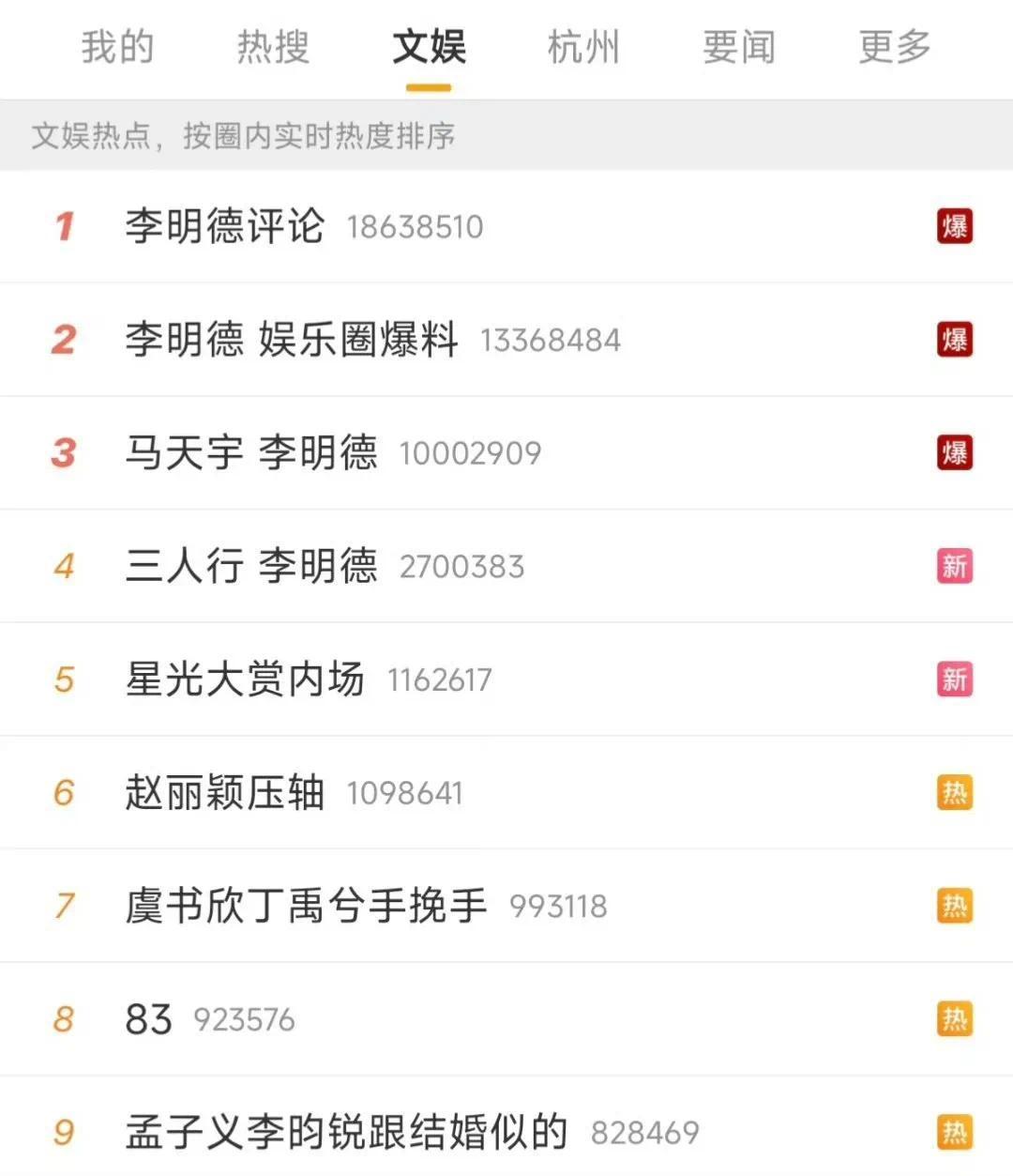 此后,关于李明德的一举一动都能登上热搜。数据显示,李明德近期已上榜热搜99次,阅读量超200亿,社交平台账号涨粉997万。