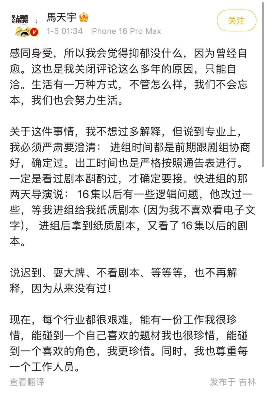 也许是由于评论区被骂得太狠,马天宇删掉了这条,另外发了一条微博补充说明: