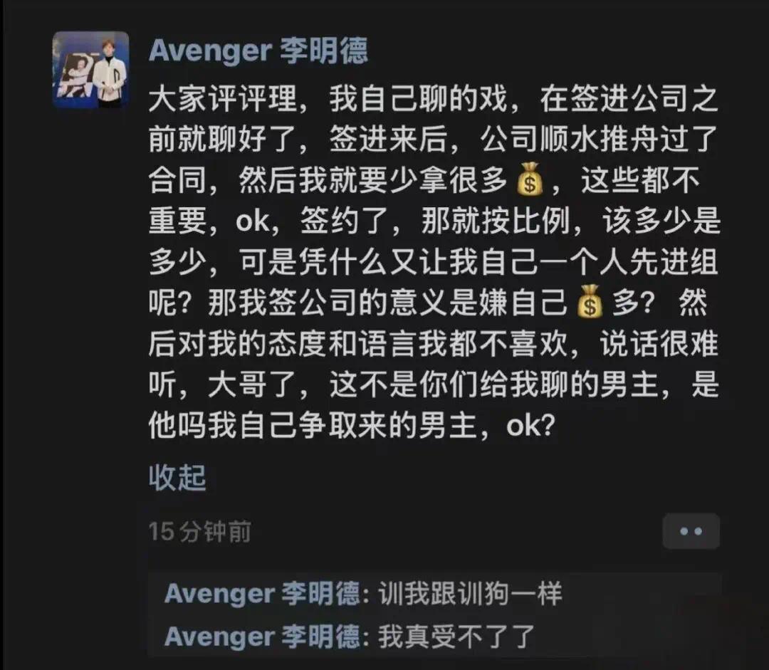 在朋友圈里,李明德连自己的经纪公司都一起创飞: