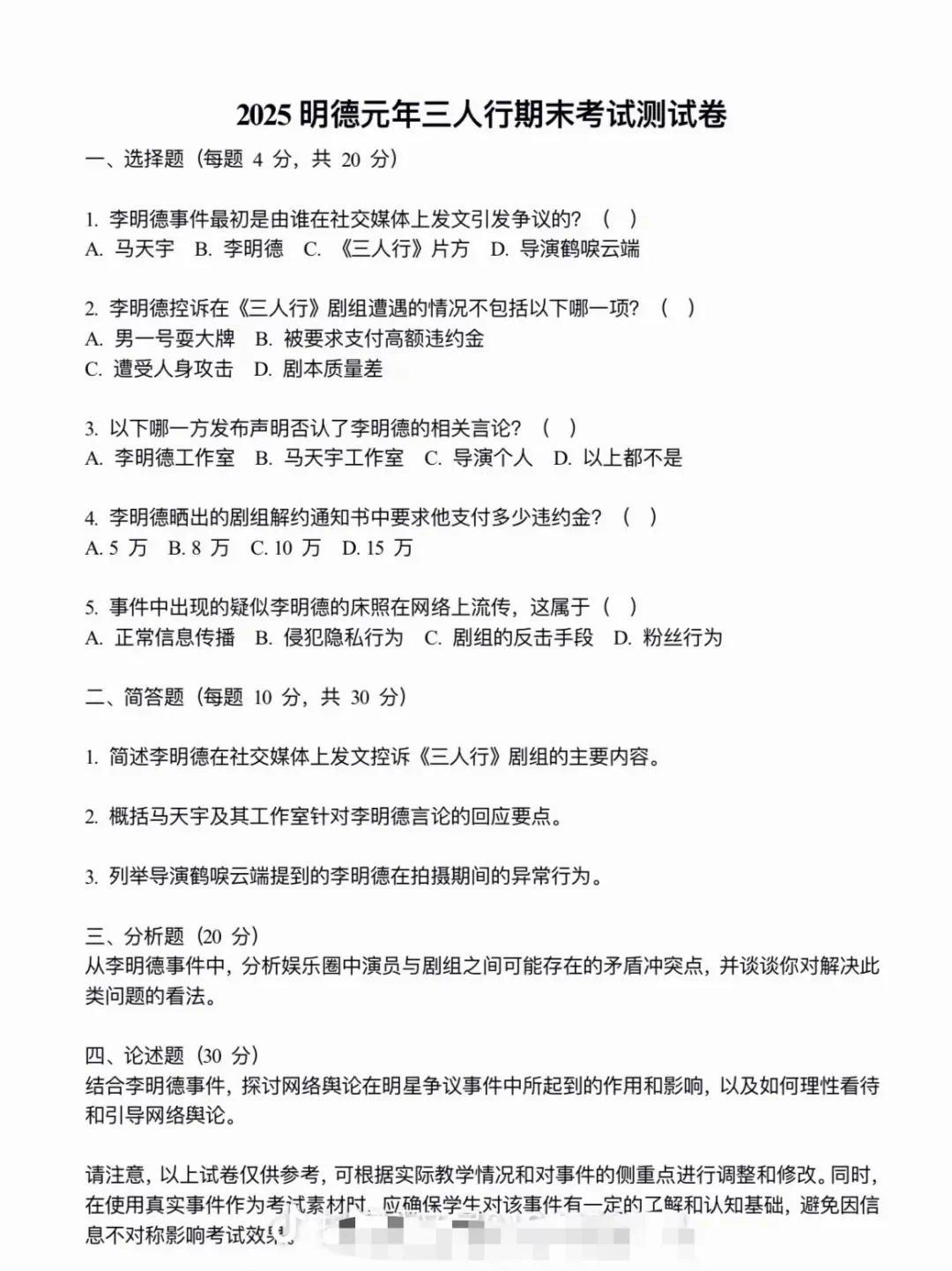 网上开始流传一份明德元年测试题,满满的全是知识点: