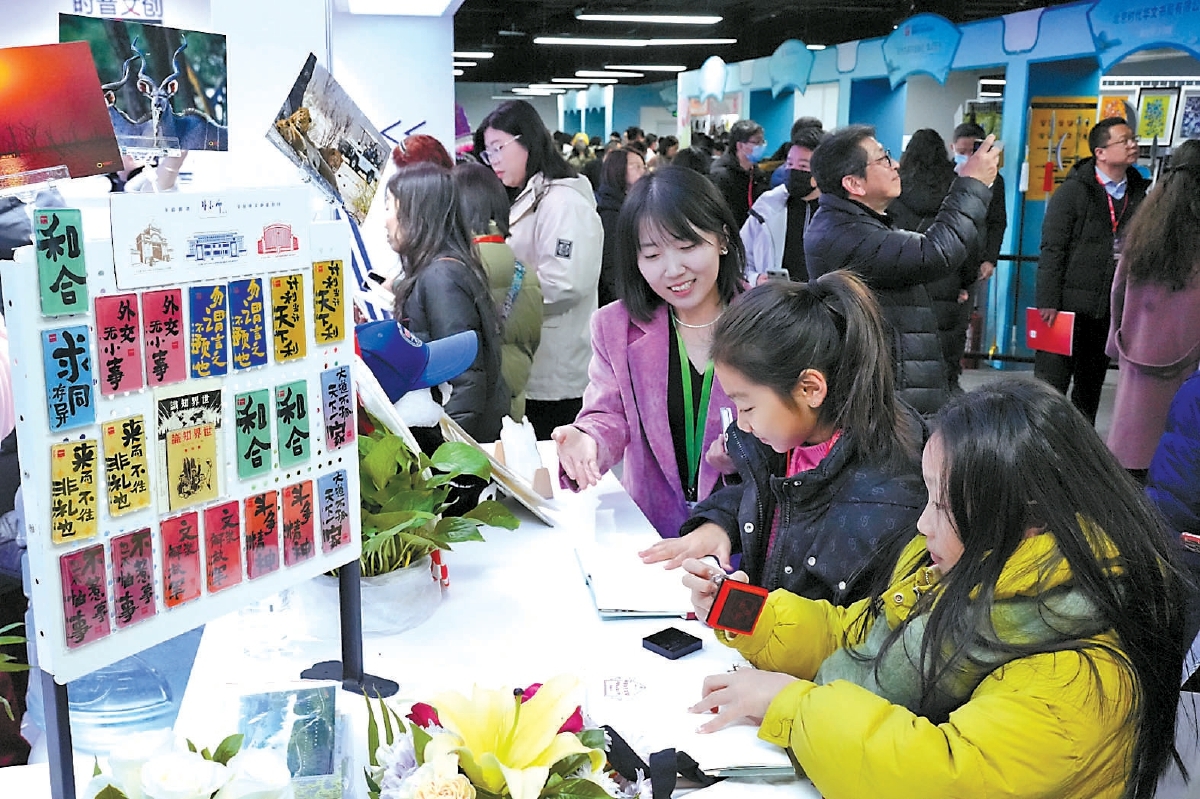 天津杨柳青年画冰箱贴、杭州南宋书房苏东坡IP系列文创、世界知识出版社《国书》集章册……进入北京图书订货会首届全国出版发行行业文创产品交易会文创展区,这些网红明星文创品,吸引着与会者排队抢购,沉浸式体验连接“古今中外”的文创环境氛围。