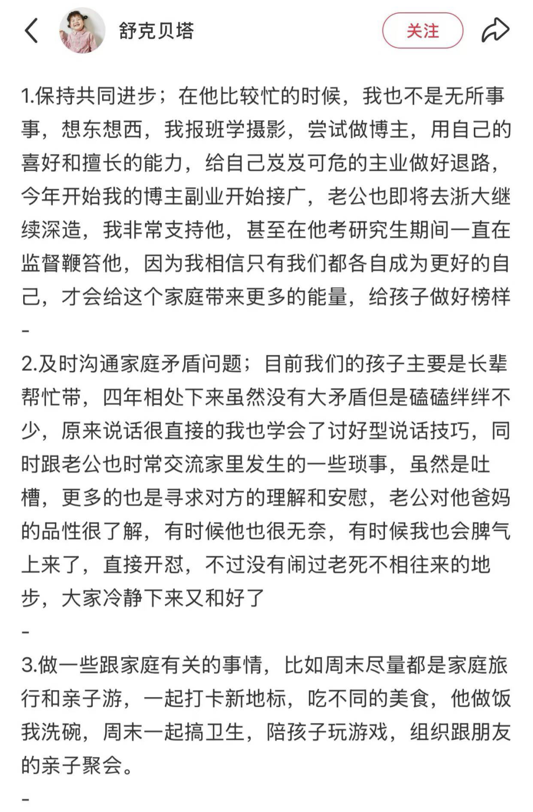 两人每天睡前,都会专门聊上半小时的天,或是和孩子的相处趣事,又或是分享近期的见闻和八卦。