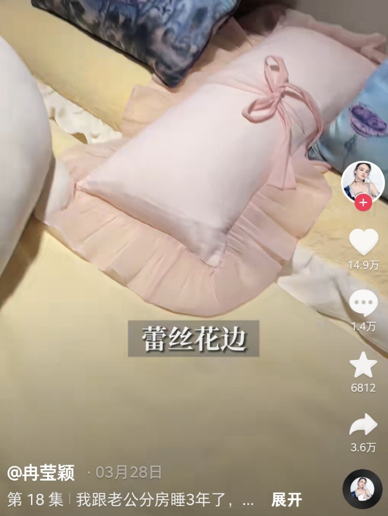 冉莹颖喜欢华丽的公主风,无论是床单还是枕头,都是各种蕾丝边,还喜欢在床上放上各种各样的玩偶。