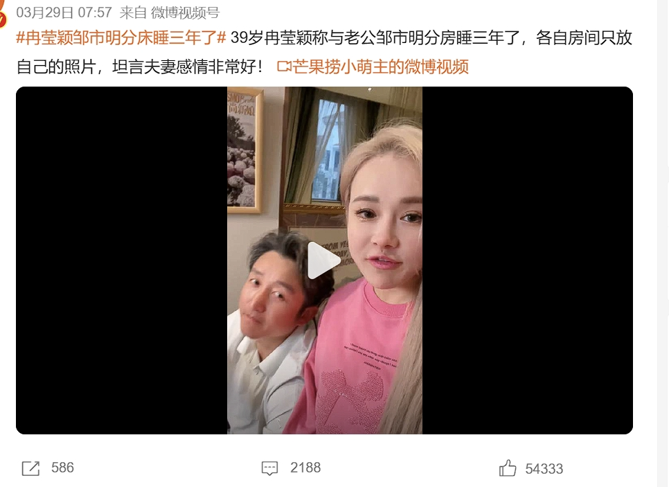像是冉莹颖和邹市明,之所以分房睡。