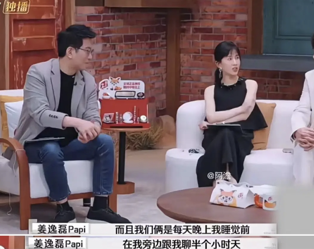 papi酱也曾在节目上,分享她和丈夫老胡分床睡的经历。