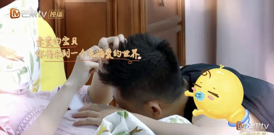 节目里,丈夫会给怀孕的李艾按摩浮肿的双腿,再轻声细语给肚子里的孩子,讲起睡前故事。