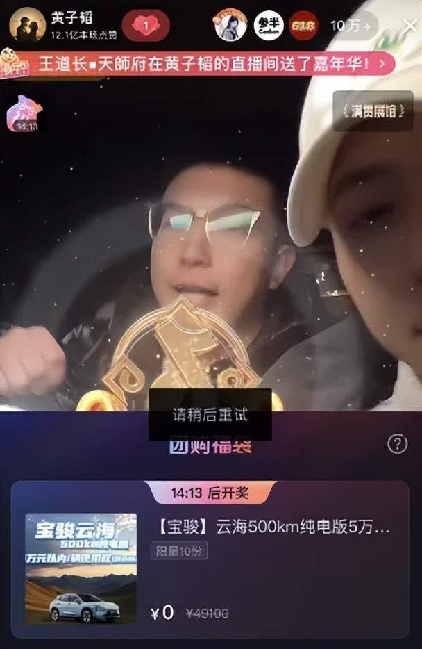 黄子韬表示,送出的车为宝骏云海,纯电500km续航款,官方售价在123800元,因为直播抽奖属于有奖销售内容,要求不能超过5万元,所以最终只能送出汽车使用权。抽中后,汽车品牌方将与用户签订保障协议,建立vip群。